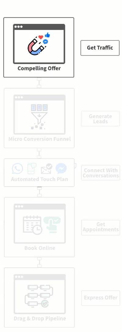 Use your Micro Conversion Lead Capture website to generate leads and retarget visitors with content that converts. Contact partial leads from the first step, to scheduled appointments at the last step.